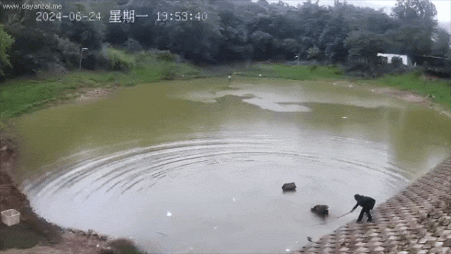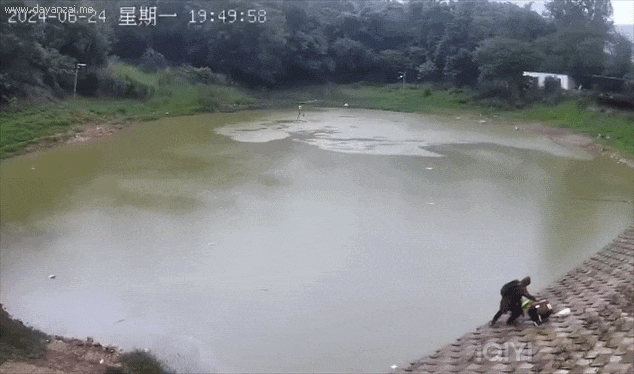 幸运的是,休息期间在旁钓鱼的辅警赵燕福目睹了这一切。他迅速拿起手中的抄网,克服下雨天堤坝湿滑的风险快速来到张某落水的岸边,将抄网杆伸向挣扎中的张某,成功将其救上岸。