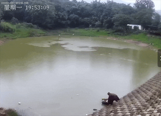 就在大家以为危险已经解除时,坐在堤坝上休息的张某,起身后第三次滑入水中。