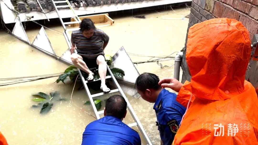 汹涌的洪水造成沿河部分居民被困,当地消防、公安正紧急转移受困人员,部分被转移人员已被安置在指定安置点。当地已在14:00将防汛Ⅲ级应急响应上调为Ⅱ级。同时,当地还设置了6个紧急避险安置点。