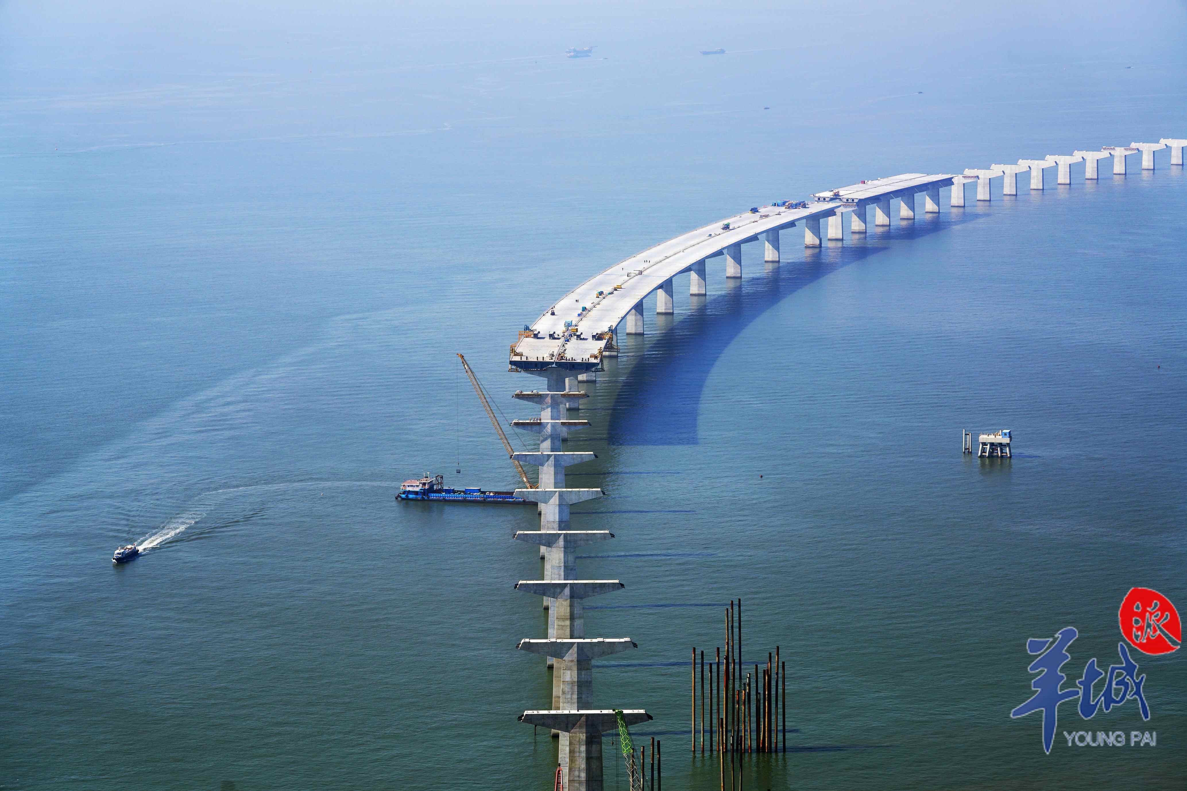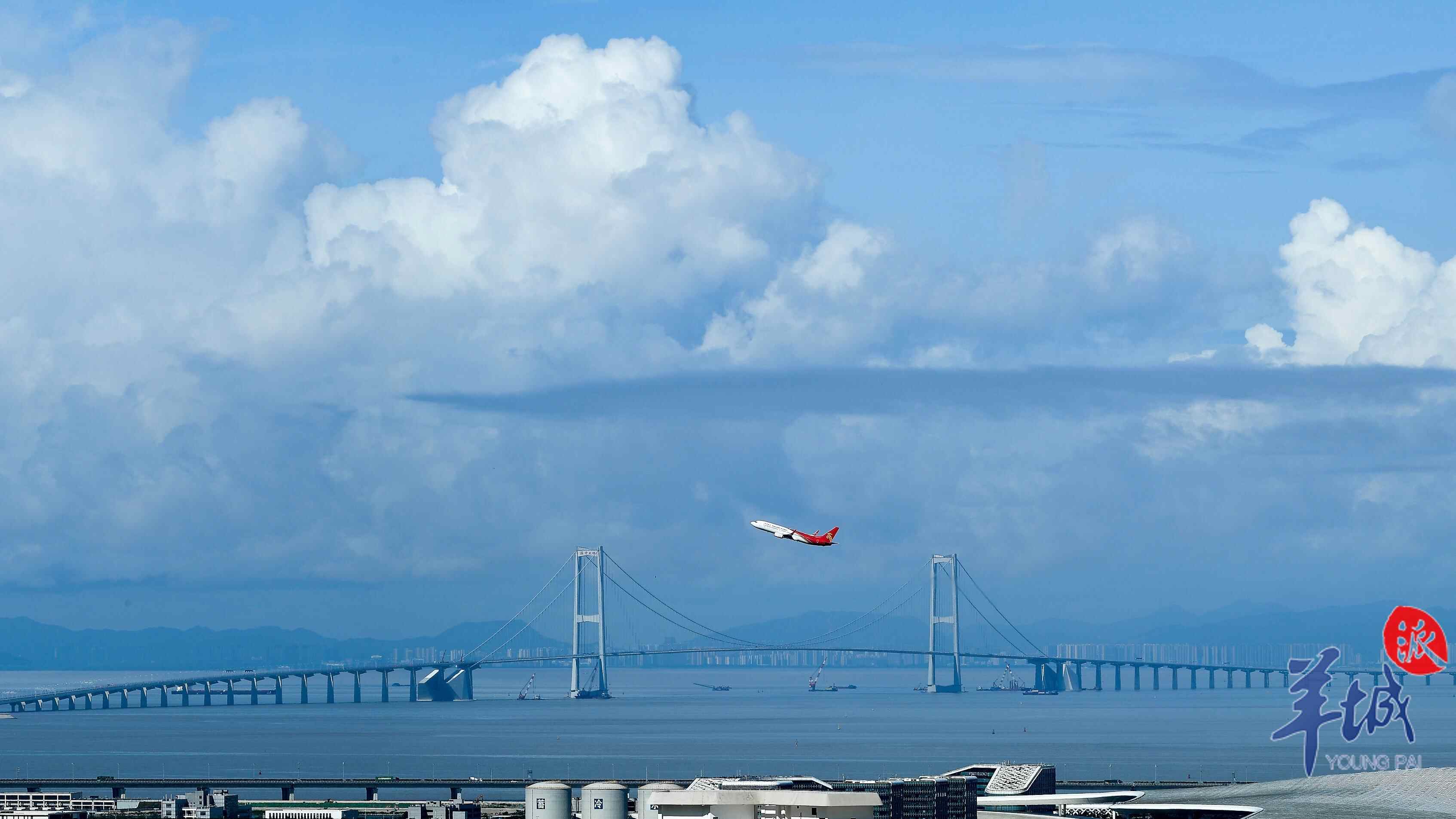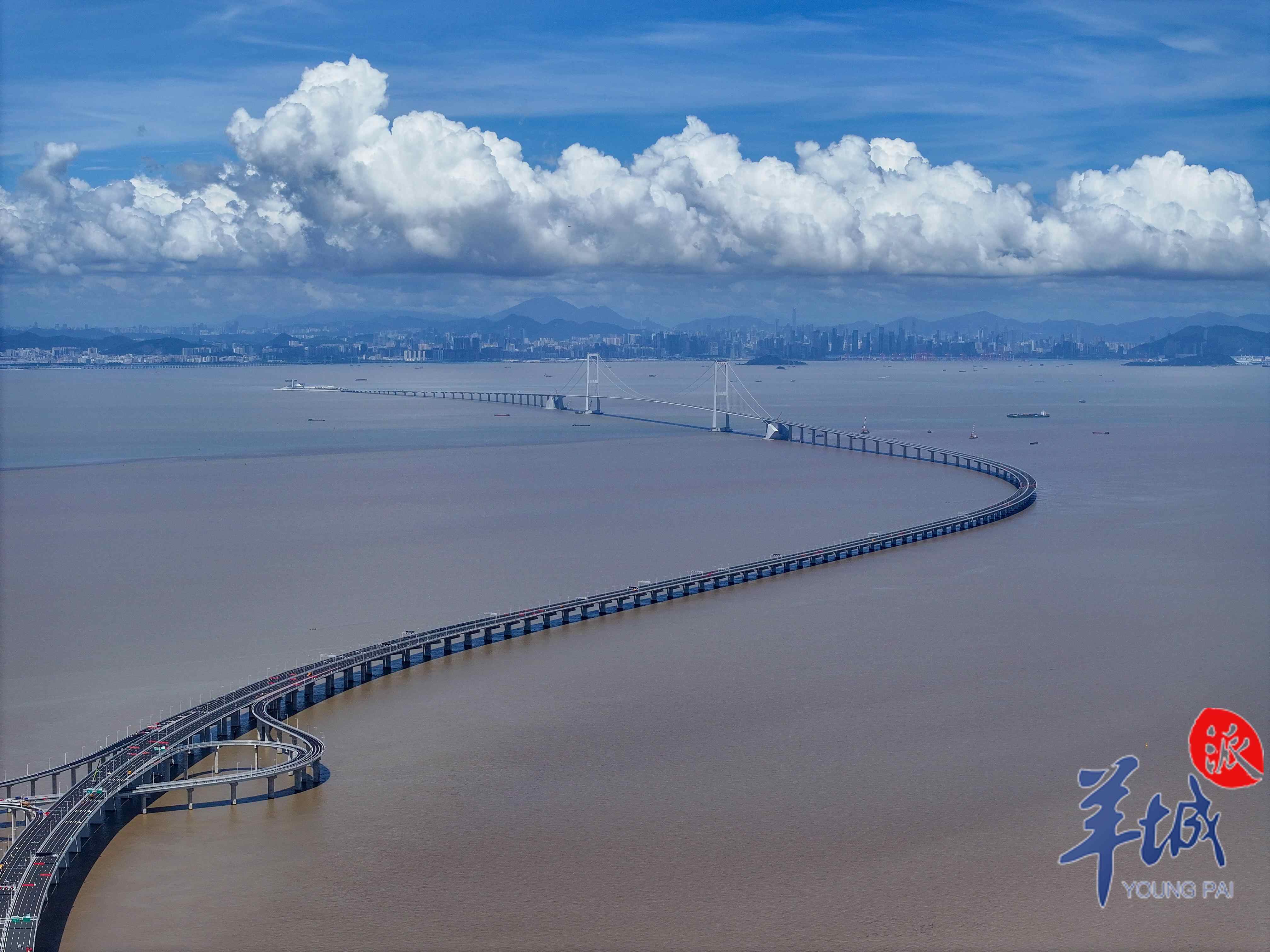 又见长桥卧碧波。这是继港珠澳大桥后,伶仃洋上又一个新时代的超级工程代表作。它集“桥、岛、隧、水下互通”于一体,是世界级跨海通道集群工程、粤港澳大湾区超级工程、粤港澳大湾区关键交通枢纽。