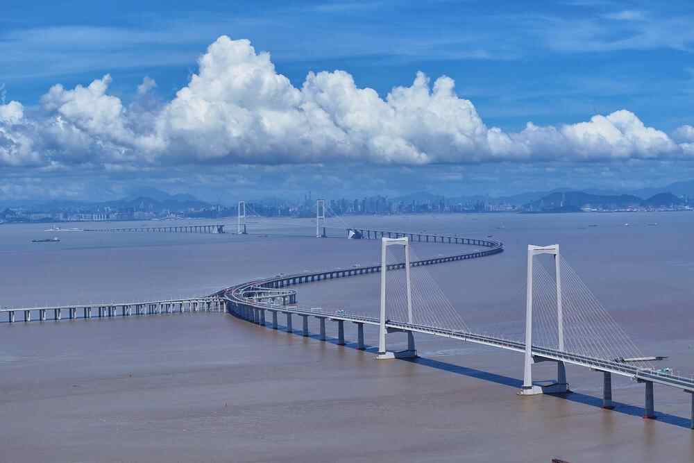 此外,从厦门海沧大桥到南京长江第三大桥,再到青岛胶州湾跨海大桥、苏通长江大桥、马来西亚槟城第二跨海大桥以及港珠澳大桥等,中国的桥梁建设宛如一幅壮丽的画卷,展示了从追赶到引领的伟大跨越。厦门海沧大桥当时是世界第二、亚洲第一座三跨连续全漂浮钢箱梁悬索桥,其独特的设计和施工技术,不仅提升了厦门市陆岛之间的交通水平,更促进了区域经济的发展;大桥的成功建设,体现了中国建造大型复杂结构悬索桥的卓越能力。南京长江第三大桥作为长江上重要的过江通道,是世界第一座曲线形钢塔斜拉桥,其创新的设计和施工方法,再次证明了中国在桥梁建设领域的先进地位。杭州湾跨海大桥、青岛胶州湾跨海大桥是当时世界最长的跨海大桥之一,展示了中国在超长跨海大桥设计和施工方面的卓越能力。马来西亚槟城第二跨海大桥是中国桥梁建设技术走向国际化的标志性工程,这座大桥的建设不仅提升了马来西亚槟城与其腹地之间的交通水平,还展示了中国企业在国际工程市场中的竞争力。