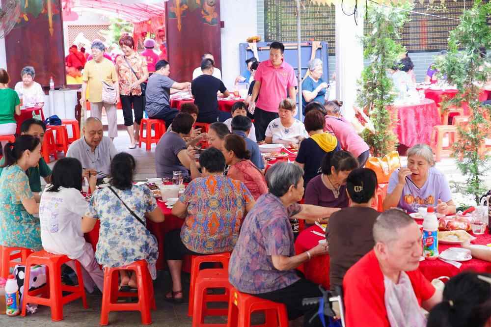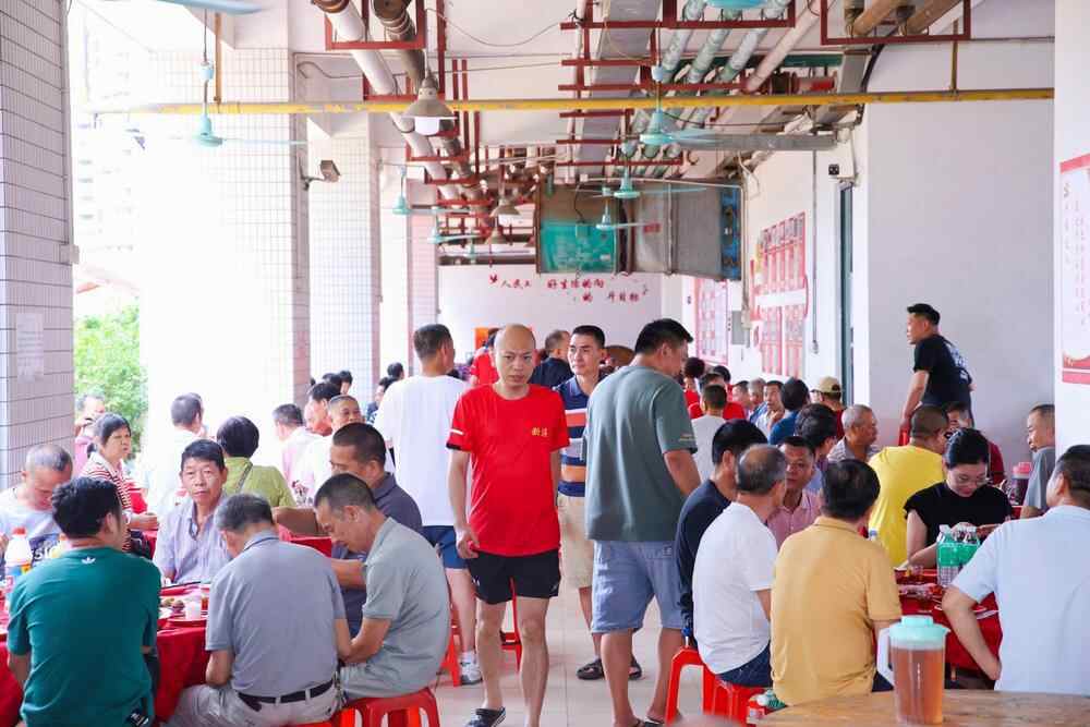 “村委请我们吃龙船饭,是对我们的关心和祝福,我们这一桌是古稀桌,全部都是70岁以上的老街坊、老朋友,今年村里龙舟活动搞得很热闹,全村的龙船一起还神很难得,大家期盼了很久,今天很开心,希望个个都龙精虎猛,长命百岁!”78岁的董叔笑着说。