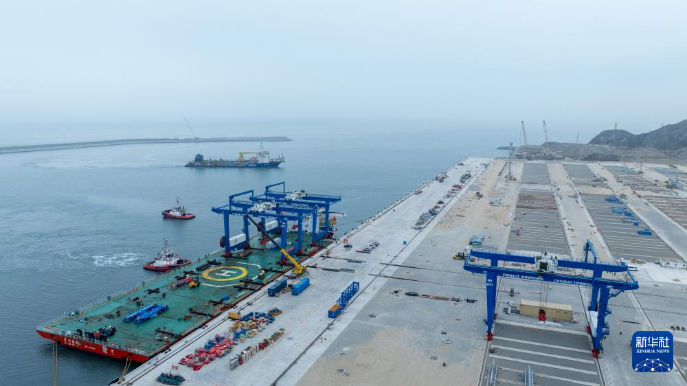 这是6月21日在秘鲁钱凯港拍摄的码头操作区。 新华社记者 李木子 摄