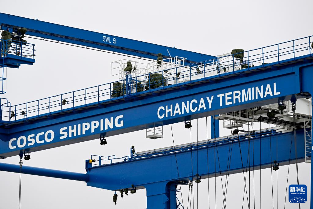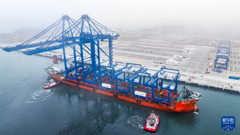 6月27日,岸边集装箱起重机和轨道吊运抵秘鲁钱凯港。 新华社发(上海振华重工供图)