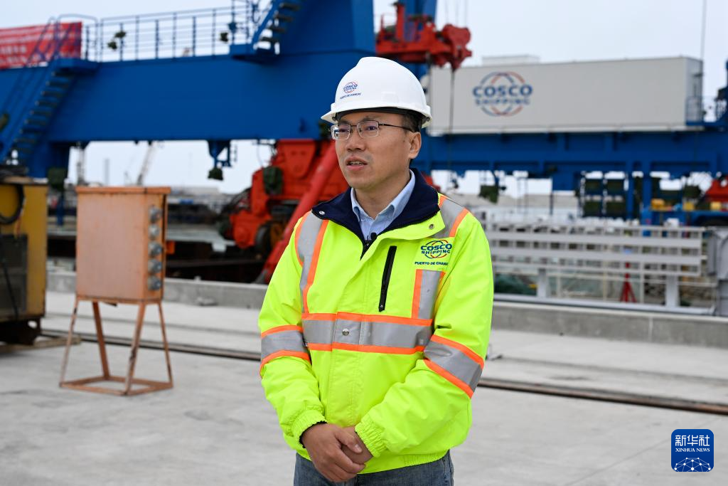 6月21日,在秘鲁钱凯港,中远海运港口秘鲁钱凯公司常务副总经理何波接受新华社记者采访。 新华社记者 李木子 摄