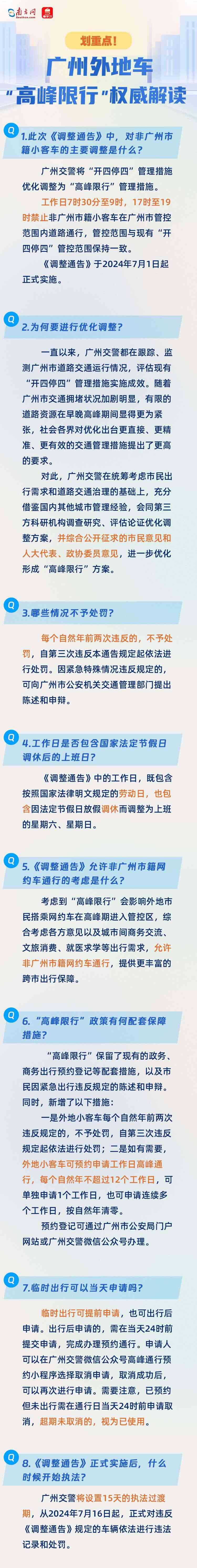 南方网此前报道,广州交警将“开四停四”管理措施优化调整为“高峰限行”管理措施,限行新规2024年7月1日起实施。
