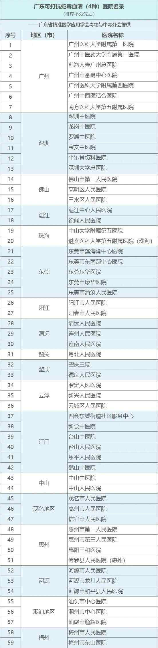 广东可打抗蛇毒血清医院名录