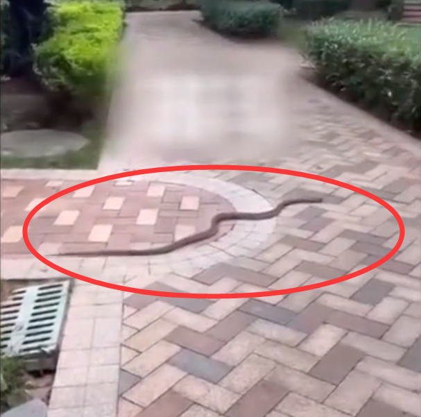视频中可看到,一条褐色的蛇从绿化带的下水道井盖中钻出来,随后经过人行道之后,消失在道路另一侧的草丛中,据悉视频拍摄于7月1日,广州荔湾区花语水岸小区内。