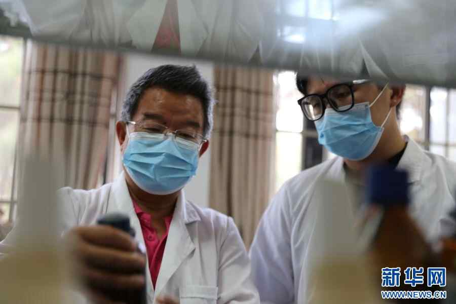 教导杨文伟(右)跟随老师汪云刚(左)学习(5月14日摄)。新华网 李宁 摄