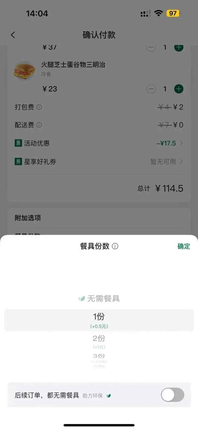 此外,记者了解到,深圳的消费者如果需要使用刀叉等餐具,每份餐具需要额外支付0.5元,北京、上海、广州等地的消费者则无需额外付费。