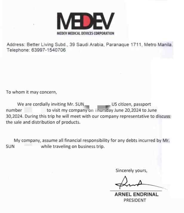 7月4日,记者联系菲律宾MEDEV医疗设备公司,该公司工作人员表示,公司并没有一位名叫“李娜”的工作人员,近期也没有向任何中方企业或个人发送过邀请函。这名工作人员称,他们也注意到了这起绑架撕票案,此案与公司无任何关系,系有人冒用公司工作人员名义,制作了假冒的公司邀请函。