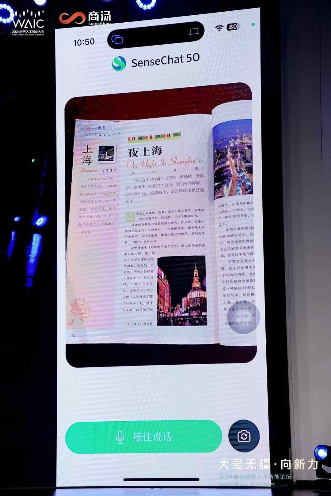 再上些难度,随便翻开一本书的任何一页,“日日新5o”都能自动介绍,它不是简单地识别文字,而是识别图文并给出总结,这一切在瞬间就能完成,真正做到实时交互。