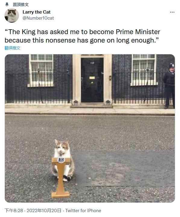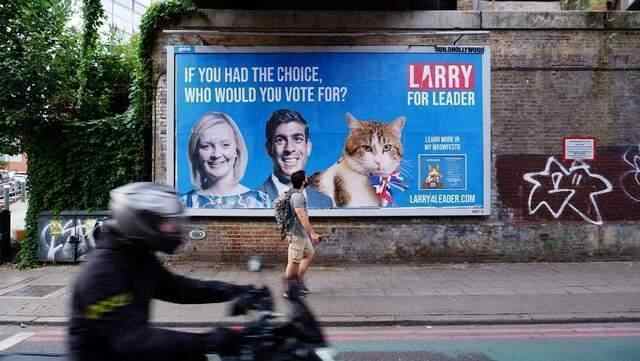 它的人气高到什么程度呢?这一件事或许也能说明:先前特拉斯和苏纳克激战正酣时,英国一些人却在给拉里拉票。他们为拉里制作了竞选网站,在街头挂起了竞选广告牌。广告牌有特拉斯、苏纳克和拉里的头像,上面写着:“如果你有选择权,会把票投给谁?”“拉里,为领导而生。”而在特拉斯胜选后,不少英国人跑到拉里的“推特”账号下“吐槽”新首相,还有人干脆建议“不如让拉里来干算了”。