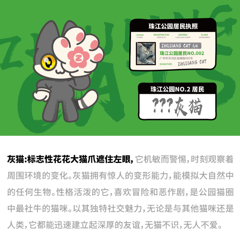 此次珠江公园将通过绘画、雕塑、展览、音乐、动画产品开发等多类型、跨平台形式打造橘猫与灰猫IP,并将其作为珠江公园猫圈的代表和多巴胺传播使者,让它们在线上线下活动中与“猫粉”亲密互动,传播正能量。