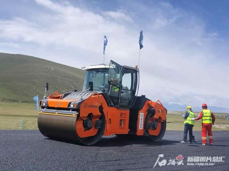 7月4日,国道218线那拉提至巴伦台公路项目第7标段沥青下面层试验段开始铺筑。高那清摄