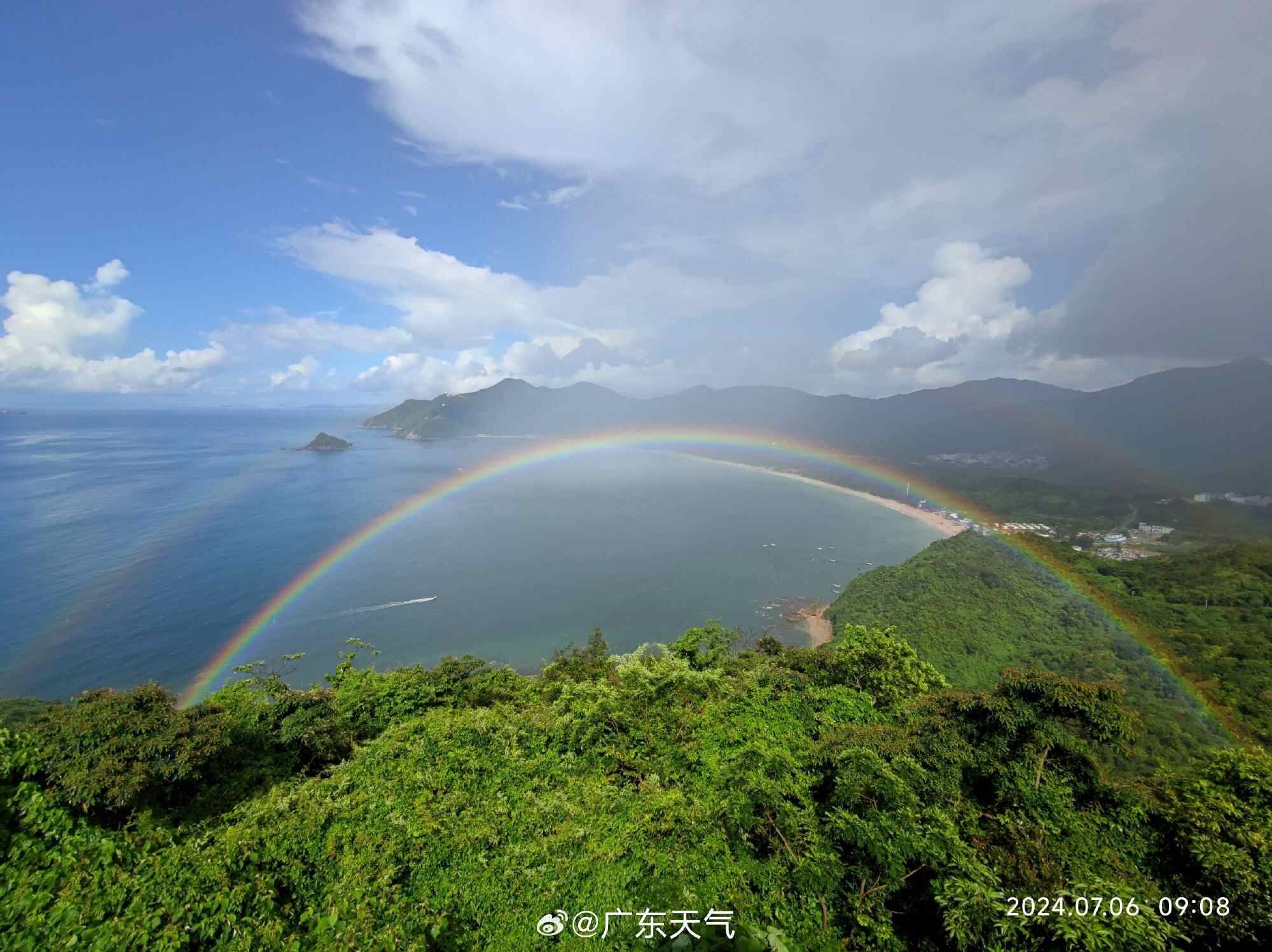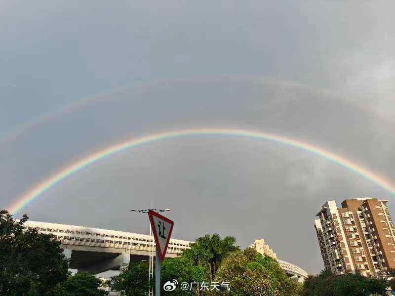 6日早上,中山和深圳出现绚丽的“双彩虹”景象,仿佛一座彩色拱门横亘天际。