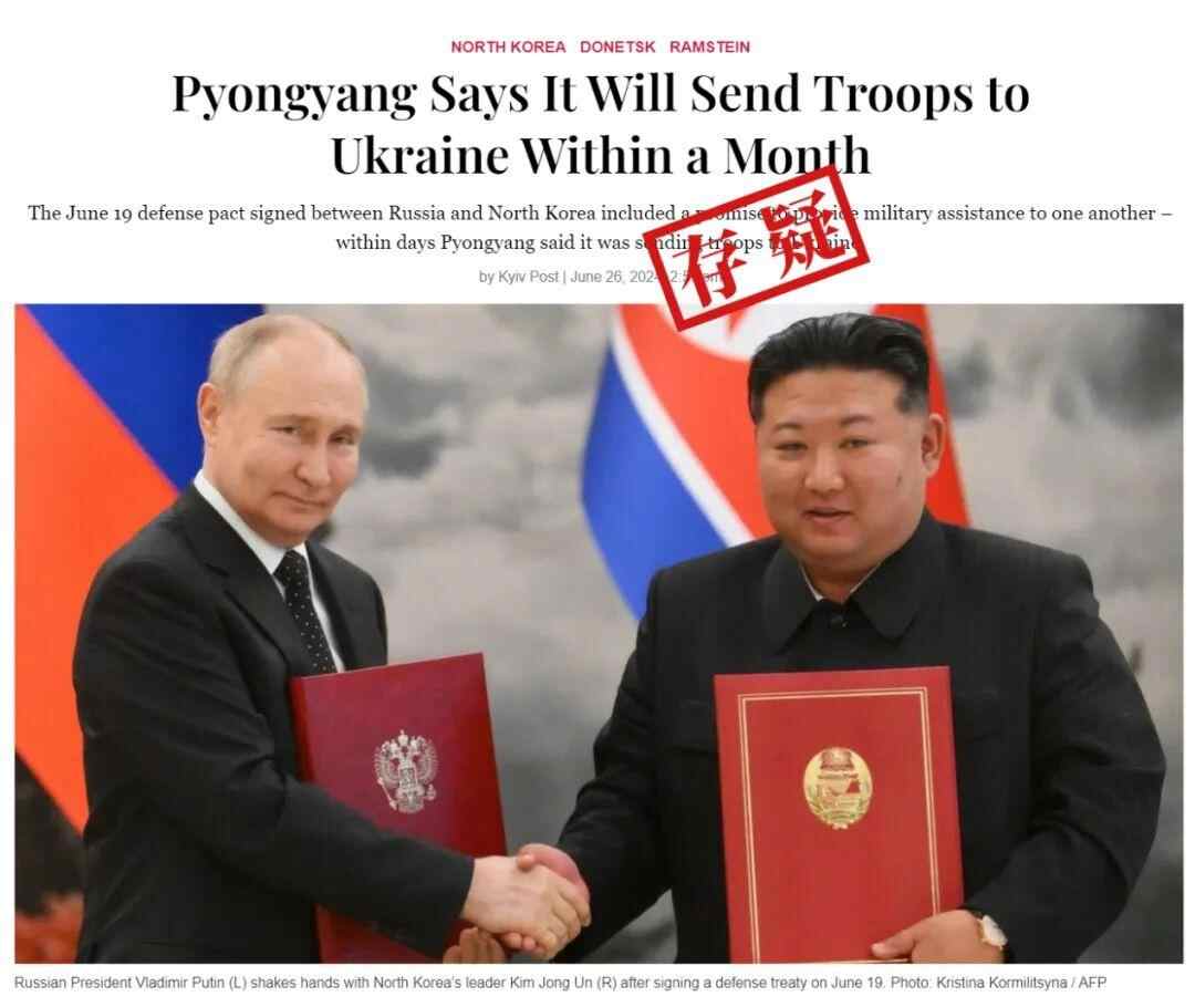 同一日,乌克兰媒体《基辅邮报》又引用了《每日快报》的报道,在没有核实消息来源情况下发布了《平壤称将在一个月内向乌克兰派兵》的文章。