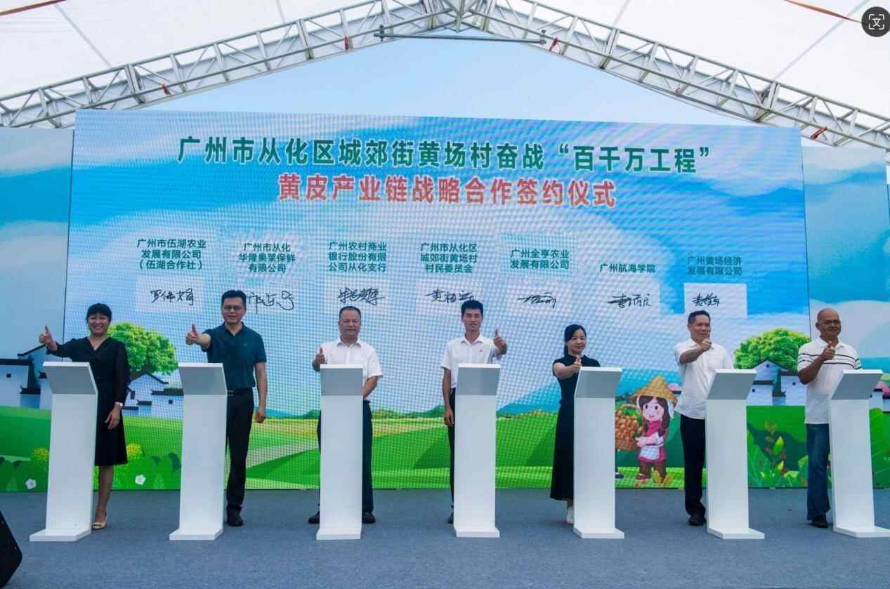 “百千万工程”不仅是一项重要的农村发展战略,更是实现乡村全面振兴的必由之路。从化区城郊街黄场村以“黄皮文化节”为契机,举行了黄皮产业链战略合作签约仪式。广州市从化区城郊街黄场村村民委员会、广州农村商业银行股份有限公司从化支行、广州市从化华隆果菜保鲜有限公司、广州黄场经济发展有限公司、广州全亨农业发展有限公司、广州航海学院、广州市伍湖农业发展有限公司代表上台签约,为黄场村黄皮产业的发展注入新的活力。