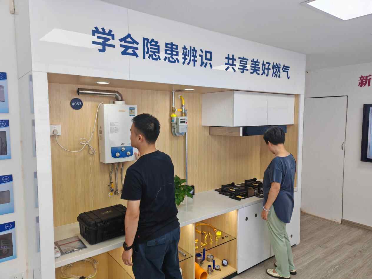 “热水器的烟管负责将燃烧产生的废气排出用气空间,这些废气包括能使人窒息的一氧化碳,如果热水器的烟管不伸出窗外,人长期在此空间中沐浴,容易导致一氧化碳中毒,甚至有窒息风险。”在开通当天,基地讲解员借助基地陈设,向市民讲解燃气安全隐患及处置方式。