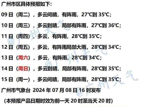 9日,珠江三角洲中南部市县多云,有分散(雷)阵雨,局部大雨或暴雨,其余市县多云,局部有(雷)阵雨。最高气温:粤北和珠江三角洲北部市县34~37℃,其余市县32~34℃。