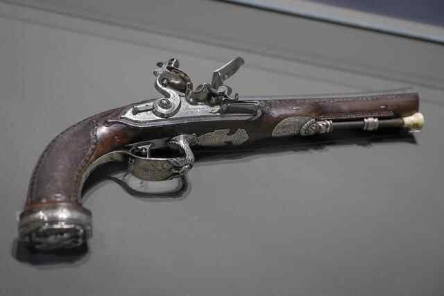 两把枪出自巴黎的枪械制造商路易-马兰·戈塞之手,预估价在120万至150万欧元(约合944万至1180万元人民币)之间。枪身装饰华丽,镶嵌着金银,上面刻着拿破仑的肖像。