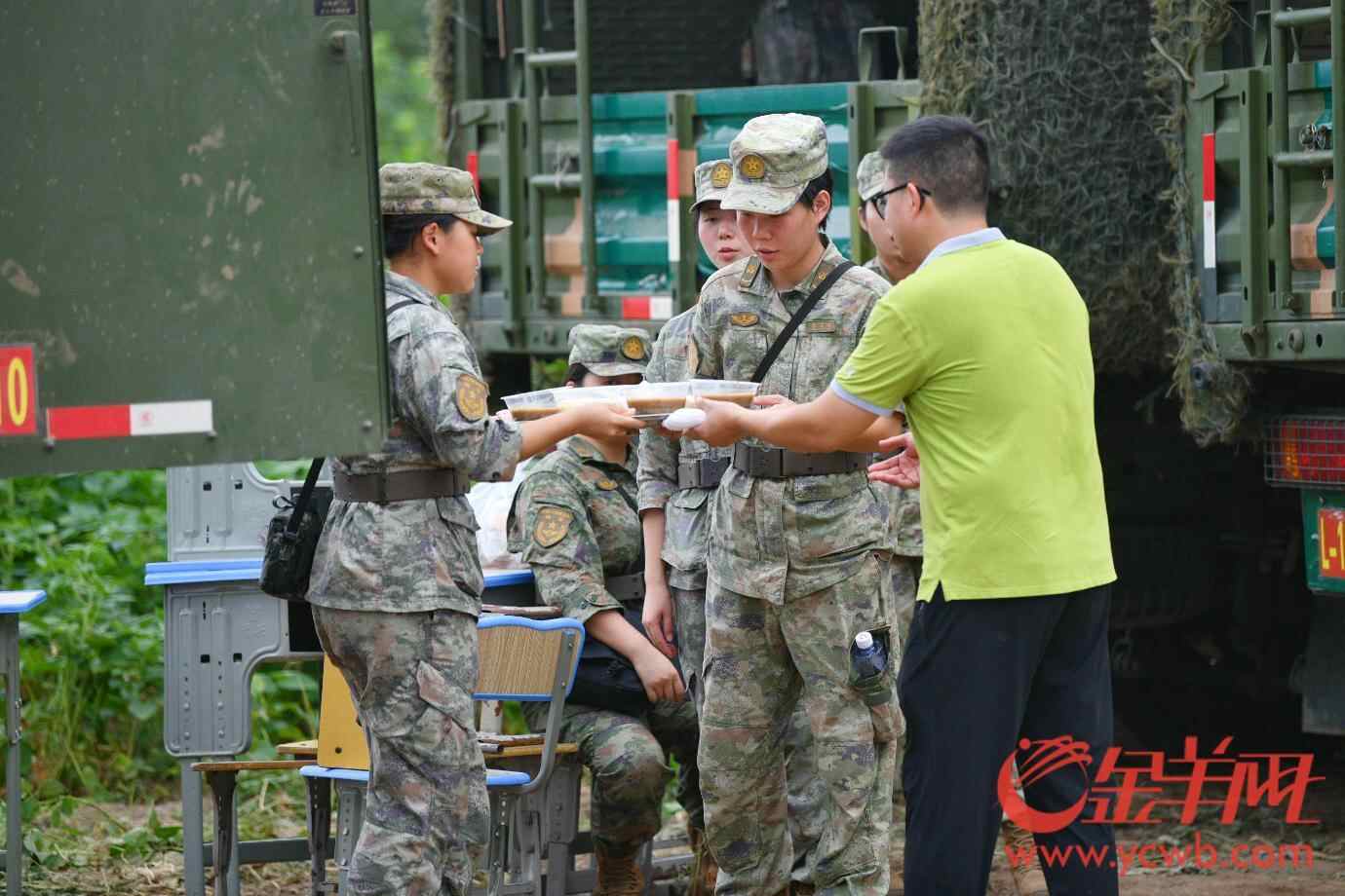 一碗接着一碗,居民们的一句“辛苦”,换来人民子弟兵们的多句感谢。烈日当空下,抢险官兵们汗流浃背的身影,不少居民历历在目。