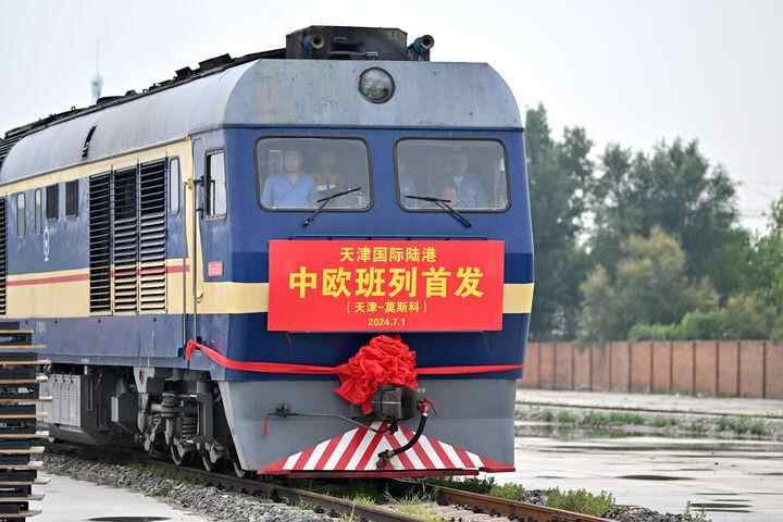 7月伊始,雨后初晴。随着火车汽笛鸣响,一列满载货物的中欧班列从位于天津市西青区的天津国际陆港缓缓驶出,开往俄罗斯首都莫斯科。这趟搭载了110标箱、满载1129吨汽车配件和机械设备等出口货物的班列将经二连浩特口岸出境,约15天后运抵目的地。