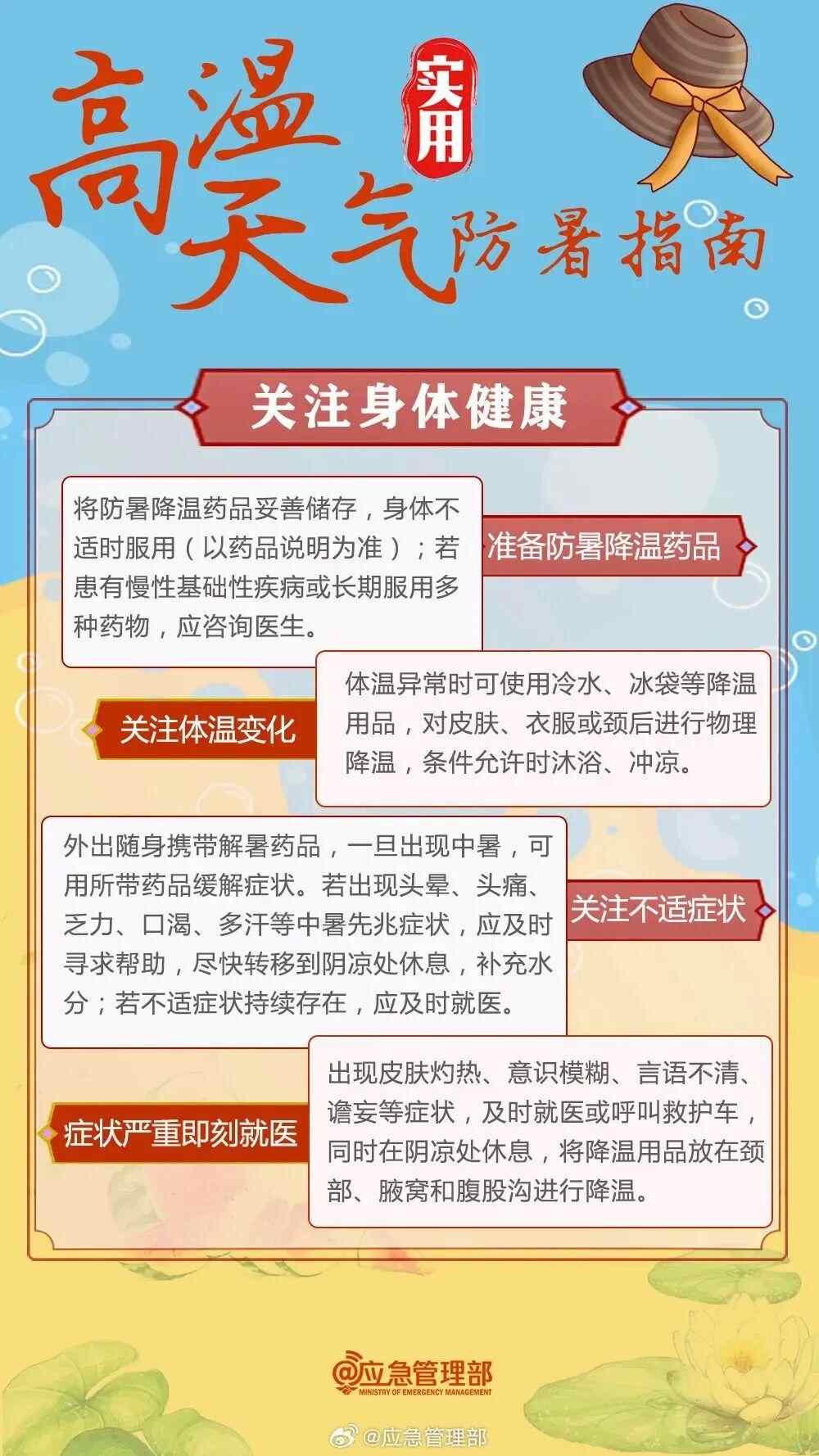 虽然雷雨会逐渐增多,但高温炎热仍是主流天气。高温天气容易引发中暑,下面这份实用防中暑“凉”策,请收好!