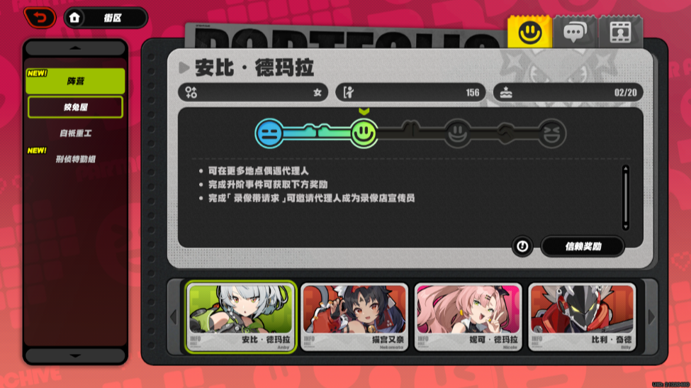 在公测版本中,《绝区零》增加了角色的信赖度系统,除了角色的个人剧情以外,在日常玩家也可以主动出击,向心仪的角色发起邀约,触发大大小小的事件,共度美好时光,加深对心仪角色的了解。满足了玩家过去在同类型游戏里,在剧情以外与心仪角色完全没有交集的痛点。