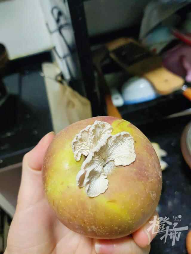 浙江湖州德清的小邓姑娘惊奇发现,家里忘记吃掉的苹果居然长出蘑菇了!