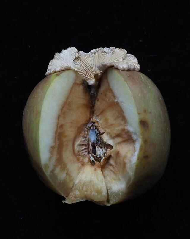 小邓姑娘说,整个6月感觉都在下雨,很多东西都快发霉了,这只被遗忘的苹果也发霉得长蘑菇了。