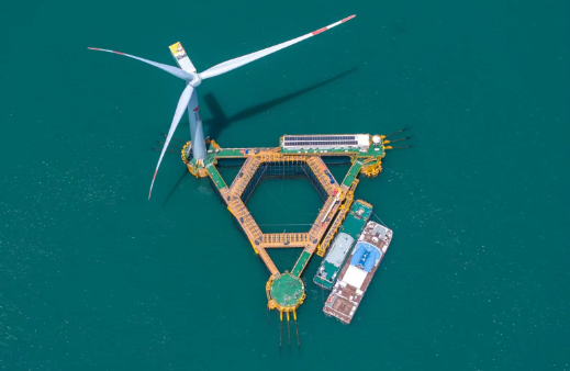 “4兆瓦风电机组在满功率运行状态下一天可发电9.6万千瓦时,约能满足4.2万人一天的生活用电需求;一个养殖周期的鱼品收入可达到数百万元。”该负责人表示,这个平台是深远海漂浮式风电与渔业养殖一体化设计概念在世界范围内的首次创新实践,风、光、渔相融合,实现了海洋空间集约利用、跨产业融合发展。