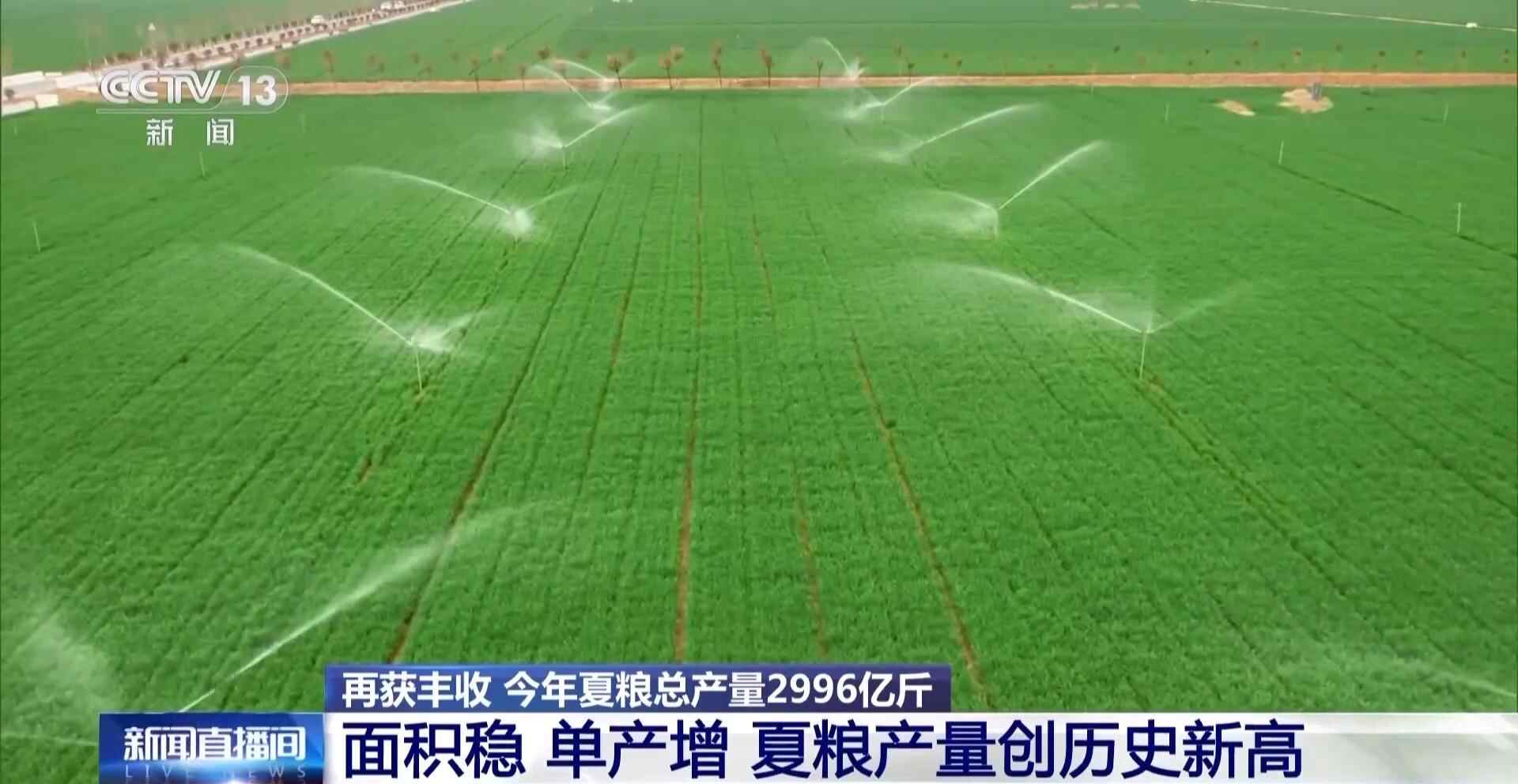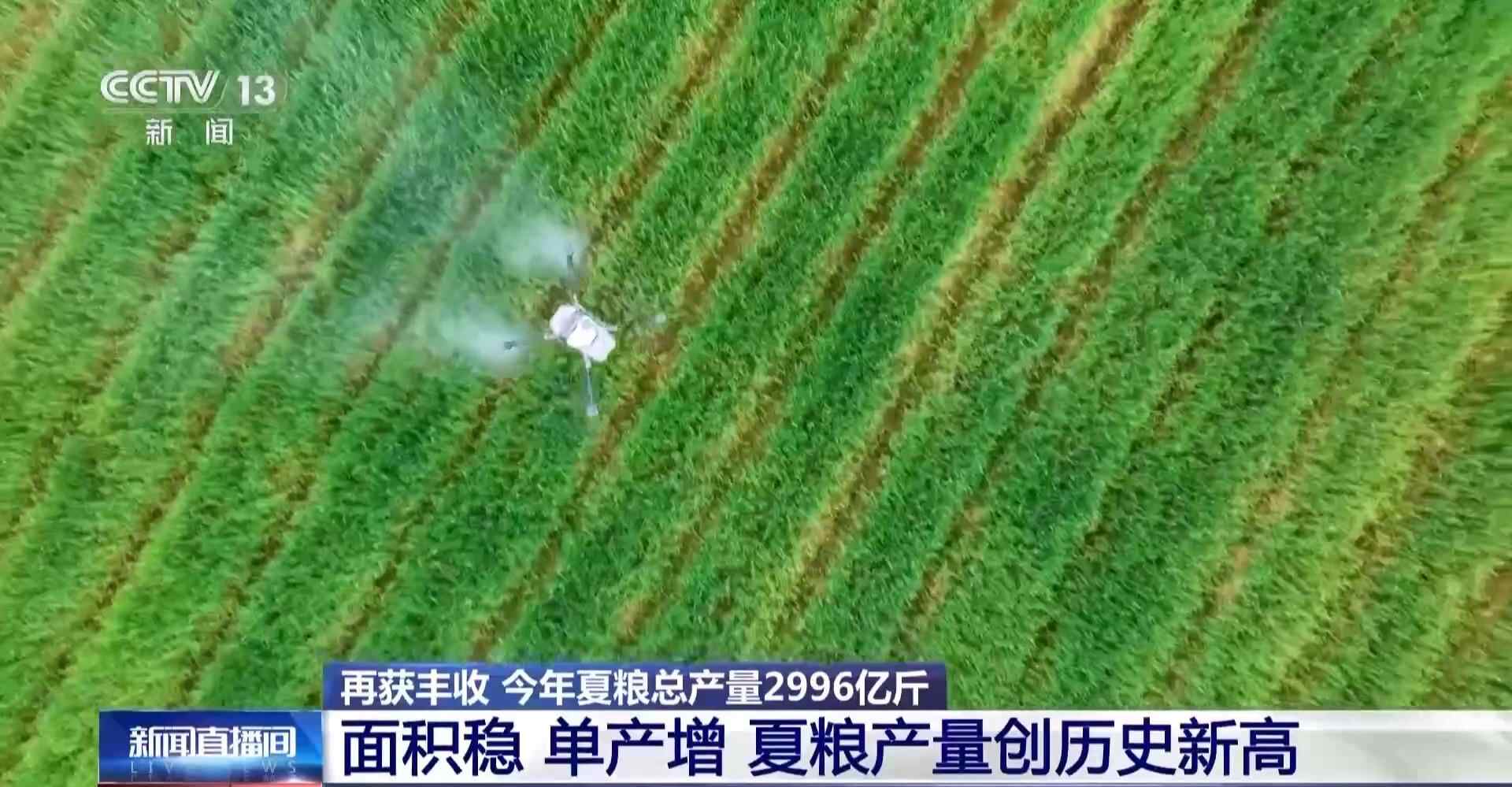 国家统计局公布2024年夏粮产量2996亿斤,比上年增加72.5亿斤,再创历史新高,为全年粮食丰收奠定了坚实基础。