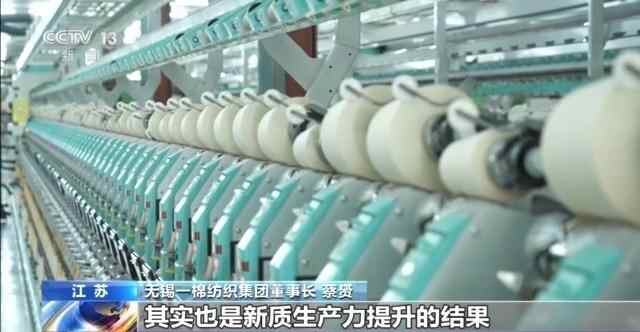 无锡一棉纺织集团董事长 蔡赟:300支棉纱的量产,其实也是智改数转,新质生产力提升的结果。以前的纱线,光凭我们的肉眼无法来检测中间的一些刺点。但是,现在我们AI技术的介入,高速摄影机可以对整个纱线进行全面检测和监控。