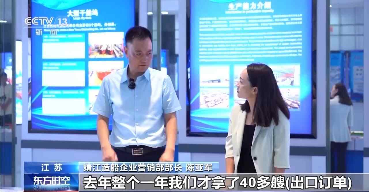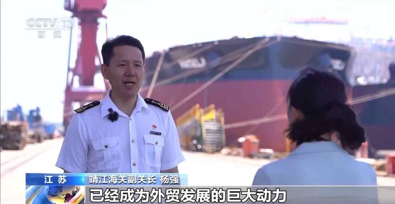 靖江海关副关长 杨强:靖江民营企业进出口总额占本地外贸超九成,其中,船舶企业近些年占比不断增长,今年已经超七成,这说明靖江造船已经成为外贸发展的巨大动力。