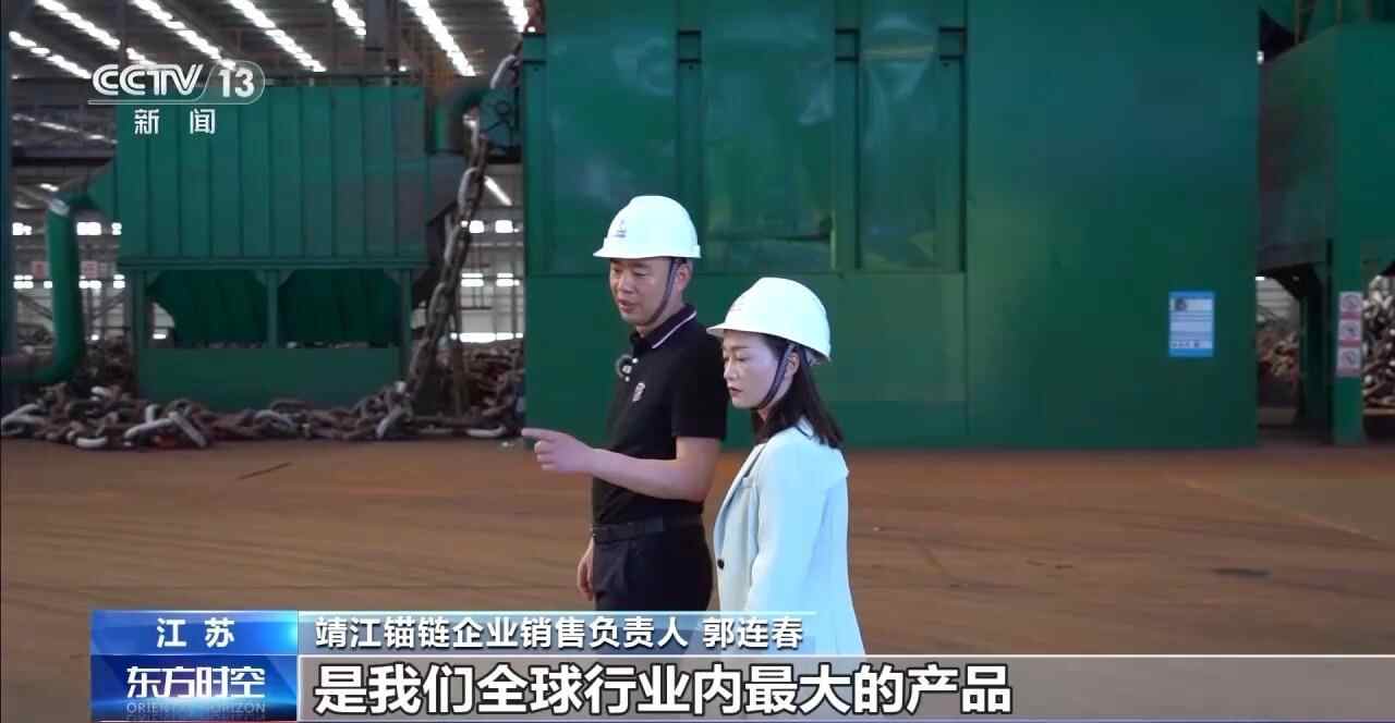 靖江发改委工业和高新技术发展科科长 蓝雨青:这家锚链企业是从村办企业起步,70%的产品出口。他们主导编制了全球首个专门关于海洋系泊链的国际标准。