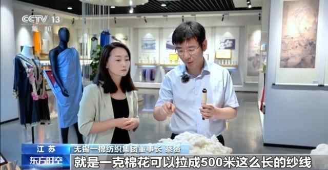 无锡一棉纺织集团董事长 蔡赟:传统的市场上面,要么以涤纶化纤为多,要么就是以普通的32支40支的普通产品为多,我们是用纯棉的100支来做的。
