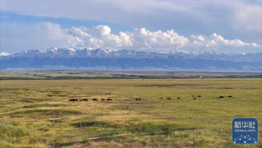 雪山脚下,草场茵茵,骏马驰骋。昭苏县位于新疆伊犁哈萨克自治州西南部一个群山环抱的高位山间盆地,这里气候湿润、水草丰茂,自古盛产良马,有“天马故乡”的美誉。