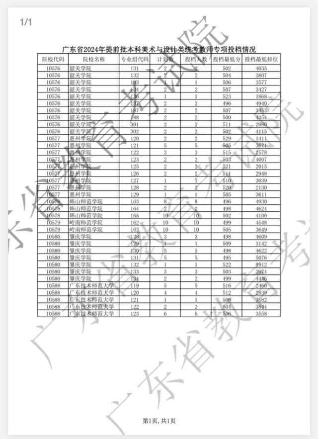 7月12日-13日,广东对提前批非军检院校及教师专项艺体类进行了投档。提前批非军检院校共投出考生1401人,其中普通类(历史)356人,普通类(物理)1045人;提前批教师专项艺体类共投出考生442人,其中体育类182人,音乐类144人,美术与设计类116人。