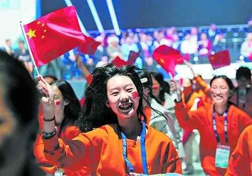 小云雀合唱团团员手挥国旗庆祝 通讯员供图