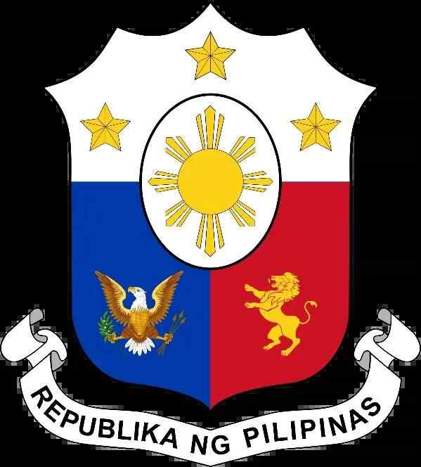 1946年起一直沿用至今的菲律宾共和国国徽,下方的白头鹰和金狮分别代表两个前任宗主国——美国和西班牙。