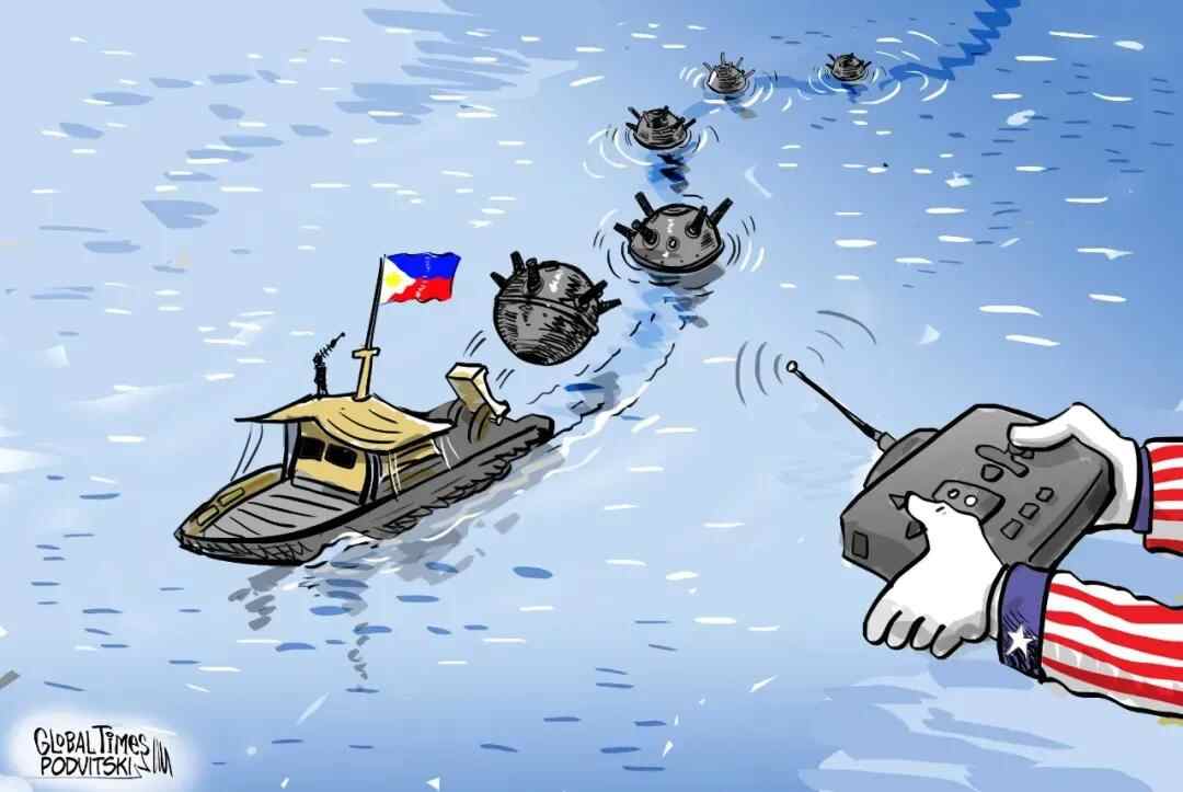 菲律宾将自己绑上美国的战车,只能是引狼入室,甘当美国地缘政治游戏的棋子,只会破坏地区安全与发展环境。(漫画 | Vitaly Podvitski)