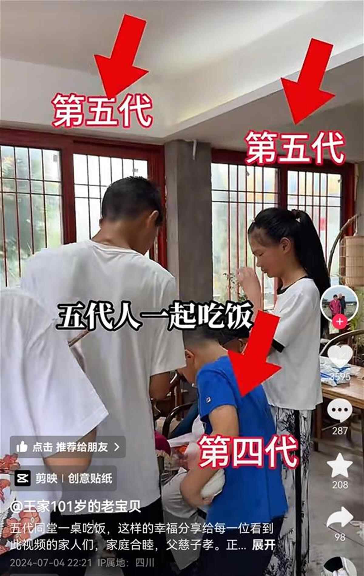 7月15日,老人家的孙媳妇李女士介绍,爷爷名叫王家华,生于重庆开县,后迁居四川大竹,现已五世同堂,“爷爷说他要健康活到120岁。”