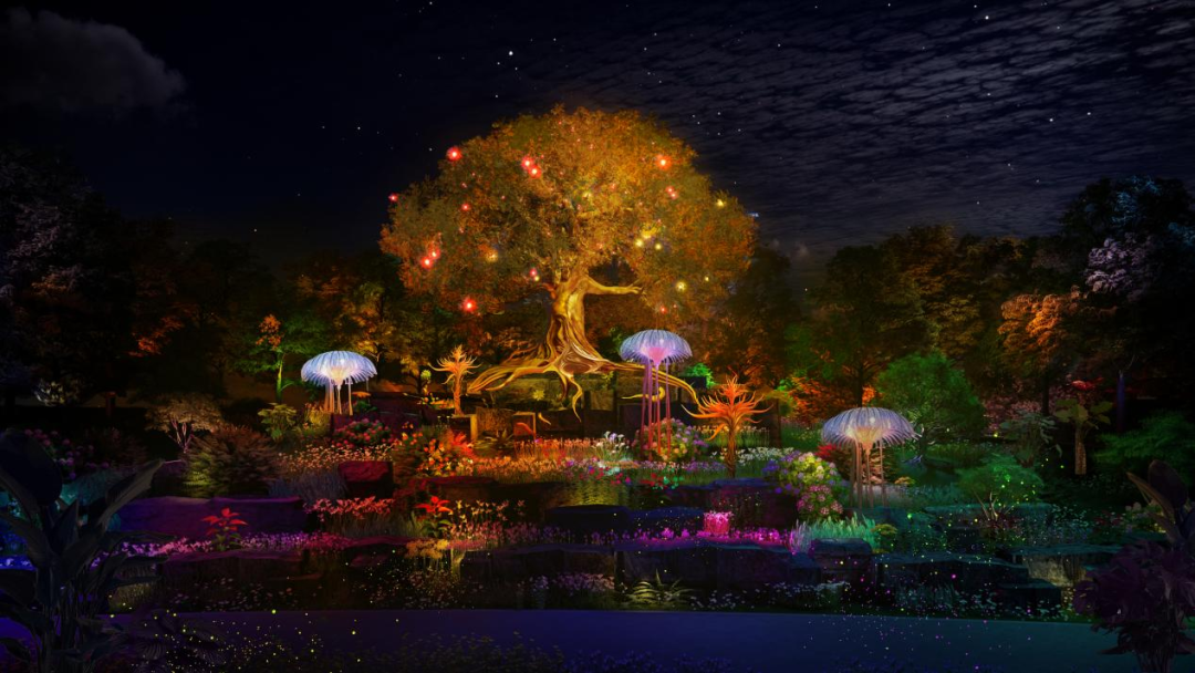 设计团队以想象力与创造力,将梦幻与未来元素巧妙融合,打造星门廊桥、未来广场、芯迷宫、启明森林、云水台、星云餐厅等六大科幻场景,为游客创造一系列的沉浸式体验空间。