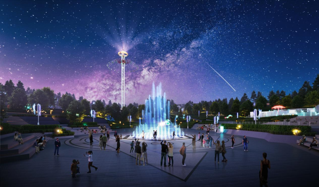 在新乐园,游客可以随58米高的太空梯缓缓上升,感受旋转惯性力带来的奇妙体验,360度俯瞰星纪世界的星球美景。