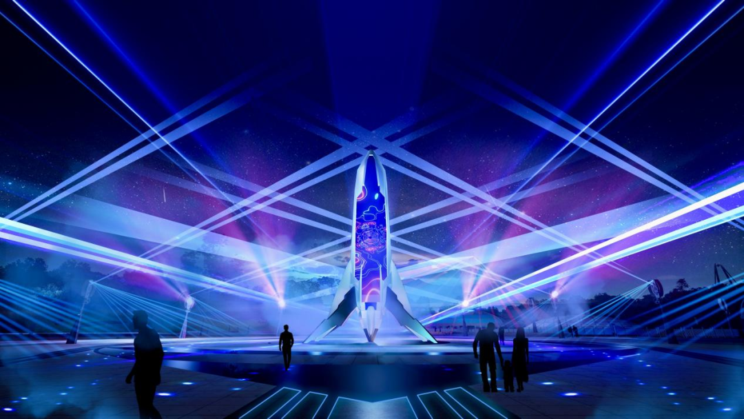 这里矗立着巨型飞船,每当夜幕降临将上演光影秀,游客可以在这里感受视觉盛宴。