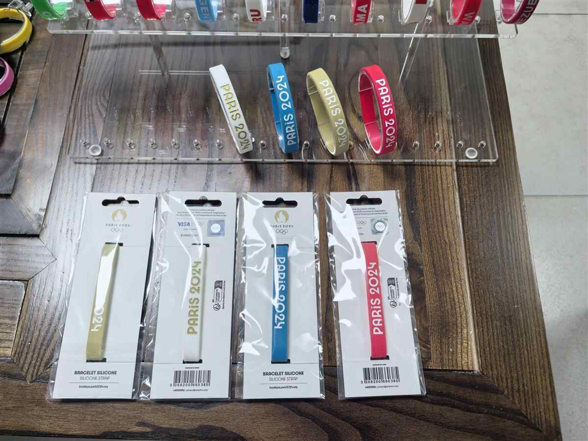 7月15日,在义乌一处不起眼的仓库,林道来所属公司生产的手环存放在这里。本次巴黎奥运会,林道来成功获得了生产一款奥运会指定硅胶手环的资格。他办公桌上摆放着的巴黎奥运会指定硅胶手环,共有白、黄、红、蓝4个颜色,手环上均印有“PARIS 2024”字样,包装上还有巴黎奥运会相关标识和专用标签。