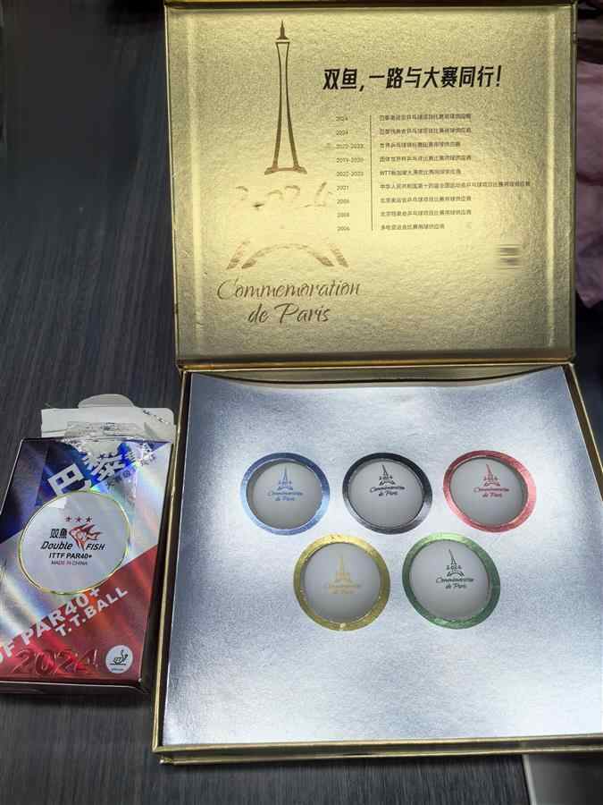 商户周坚的门面位于国际商贸城三区体育用品区二楼,主营各类比赛用球。一到店里,周坚就向记者展示了一枚印有“2024巴黎奥运会乒乓球独家供应商”字样的纪念品。“今年巴黎奥运会要用的乒乓球,都是我们代理的这个品牌生产的。”周坚拿出一盒印有“ITTF PAR40+”字样的巴黎奥运会专用乒乓球,一盒装有6只球,球整体呈乳白色。