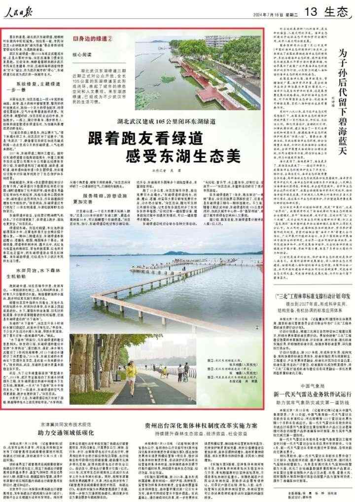 此后,为了让东湖重新回到“草型清水态”,2019年,武汉市全面启动了东湖水环境提升工程,在东湖绿道边的湖中构建水下生态系统,渐渐地,一片片“水下森林”在水中悄然生长。“有了一泓清水,东湖绿道的空气变得更清新,跑步也更舒适了。”何豆豆说。