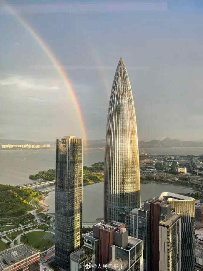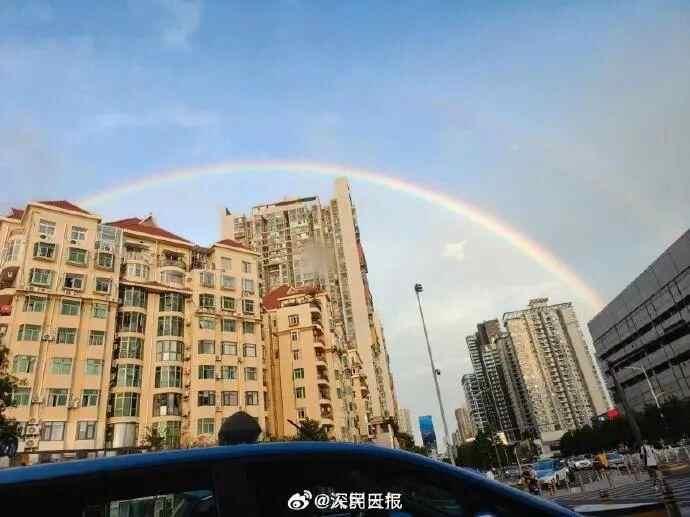 7月17日,深圳上空出现绚丽彩虹。话题#深圳双彩虹#冲上微博热搜。